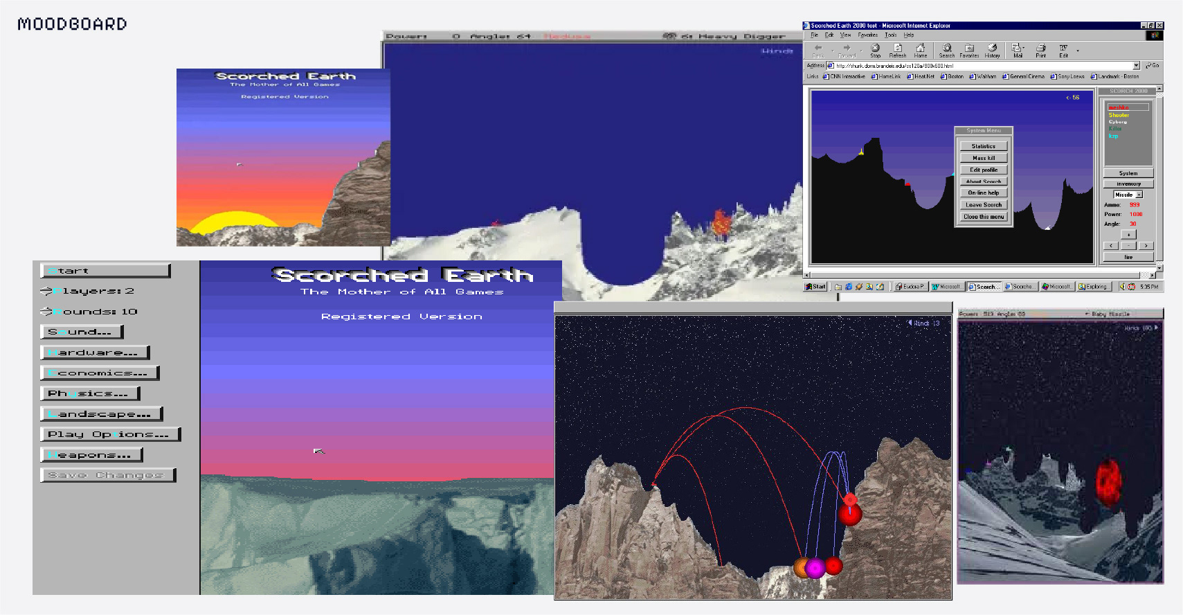 My main inspiration was the 1991 DOS computer game "Scorched Earth".